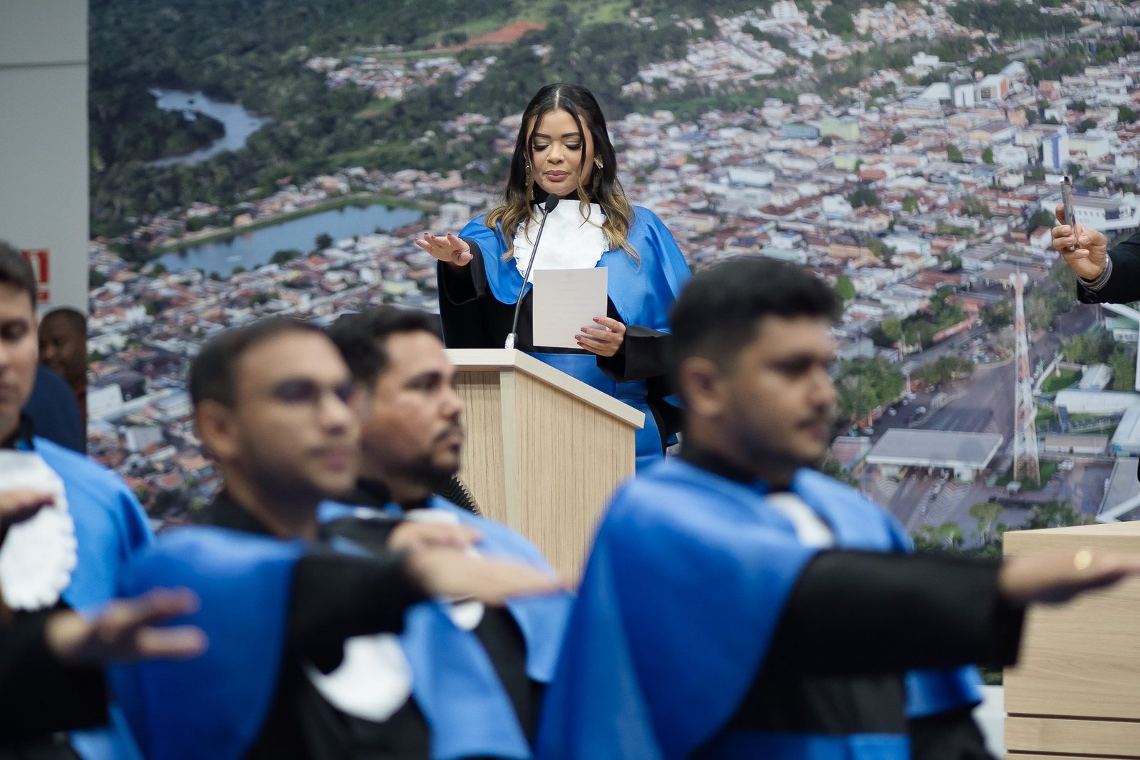 A oradora da turma, Joyce, emocionou o público ao agradecer, em nome dos 66 colegas, o apoio das famílias, o empenho dos professores e o incentivo das instituições. Em seu discurso, destacou a superação dos desafios ao longo dos quatro semestres e reafirmou o compromisso coletivo com um serviço público de qualidade.