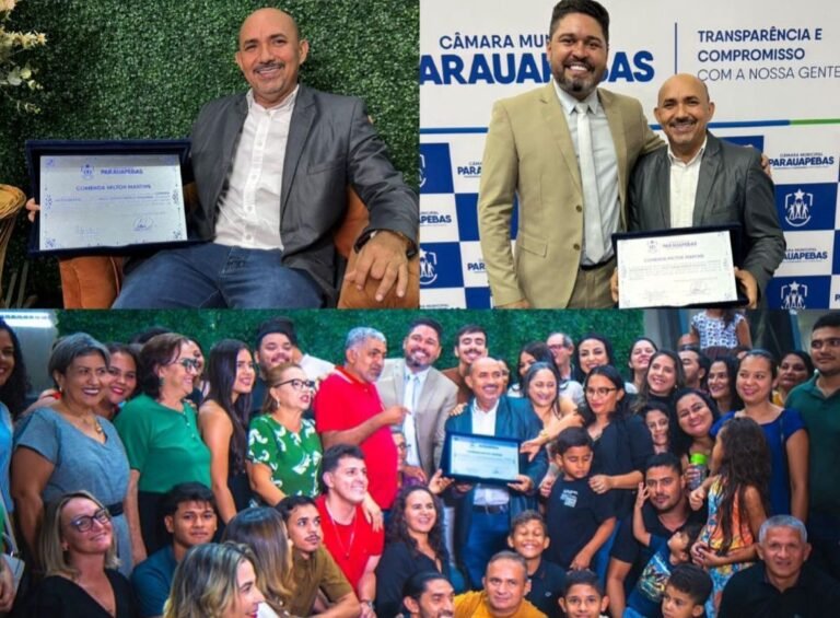 A cerimônia aconteceu no plenário da Casa de Leis e reuniu autoridades, homenageados, familiares e convidados. Durante o evento, o vereador Leandro do Chiquito entregou o título de Cidadão Honorário de Parauapebas ao senhor Israel Pereira Barros, conhecido como “Miquinha”, em reconhecimento à sua trajetória de serviços prestados à cidade.