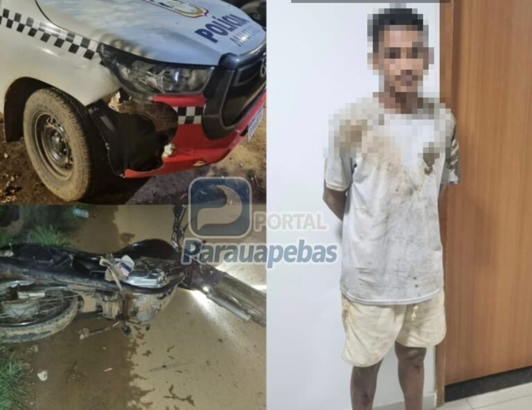 Um motociclista foi preso em Parauapebas após protagonizar uma perseguição policial que terminou em colisão contra uma viatura da Polícia Militar.