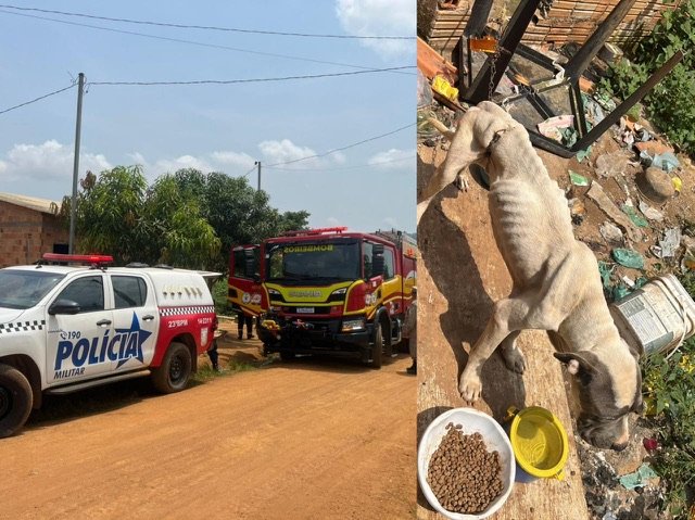 Após receber denúncia, os policiais se deslocaram até o endereço e constataram a situação. O Corpo de Bombeiros foi acionado para apoiar o resgate, realizando o corte da corrente e o atendimento inicial ao animal.
