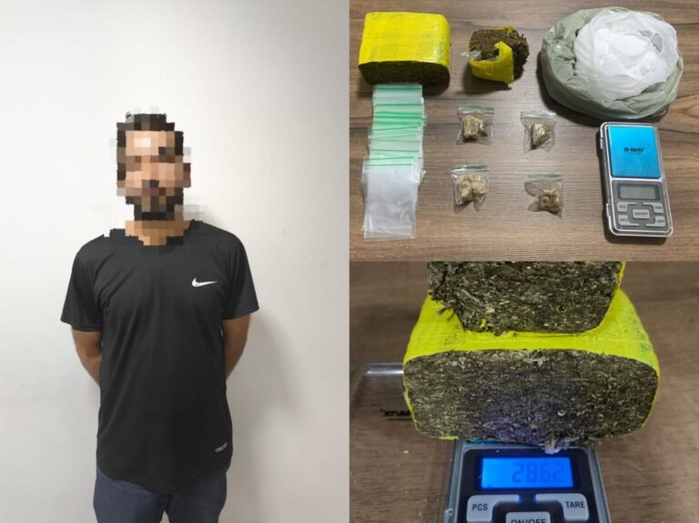 Diante da situação, a guarnição realizou a entrada tática no imóvel e confirmou a presença do material entorpecente. No interior do apartamento, os policiais apreenderam uma bacia rosa contendo 286 gramas de substância análoga à maconha, 150 gramas de substância semelhante à cocaína e 17,1 gramas de crack fracionadas em quatro porções. Também foram encontrados diversos sacos plásticos do tipo ziplog, utilizados para o embalo das drogas, e uma balança de precisão.